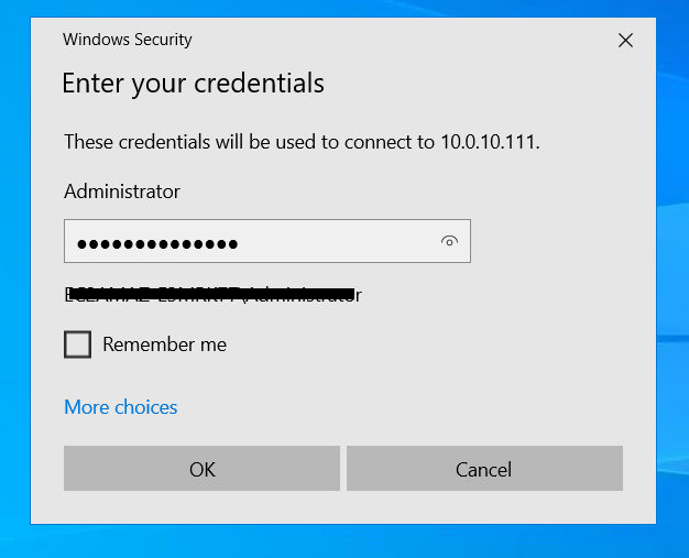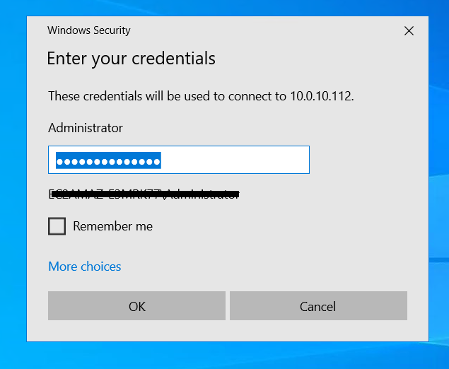 ログイン画面が表示されたら、ユーザー名に 「Administrator」 を入力し、先ほど控えたパスワードを入力して 「OK」 をクリックします。