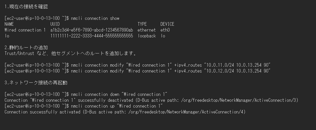 Webサーバから他のセグメントへ通信するために、静的ルートを設定します。ここでは nmcli コマンドを使用して設定します。