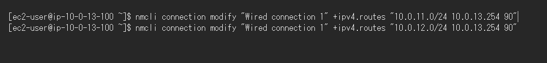 デフォルトでは通信が 管理用インターフェース から出てしまうため、他の踏み台サーバへの通信は サービス用インターフェース から出るように、ルーティングの優先順位をコマンドプロンプトから設定します。
