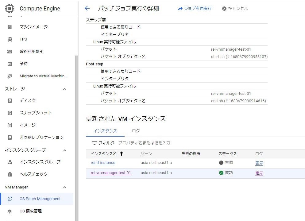 今回のパッチジョブ設定だとカーネルもupdate対象なことと再起動が必要な場合は再起動するというパッチジョブ設定をしているため、インスタンスの再起動も実行されました。