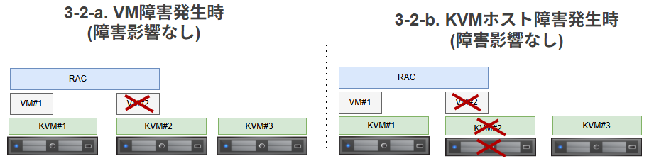 3-2-b: 1つのKVMホスト障害により、その上で稼働している2台のVMが停止するためサービスが一時的に利用不可