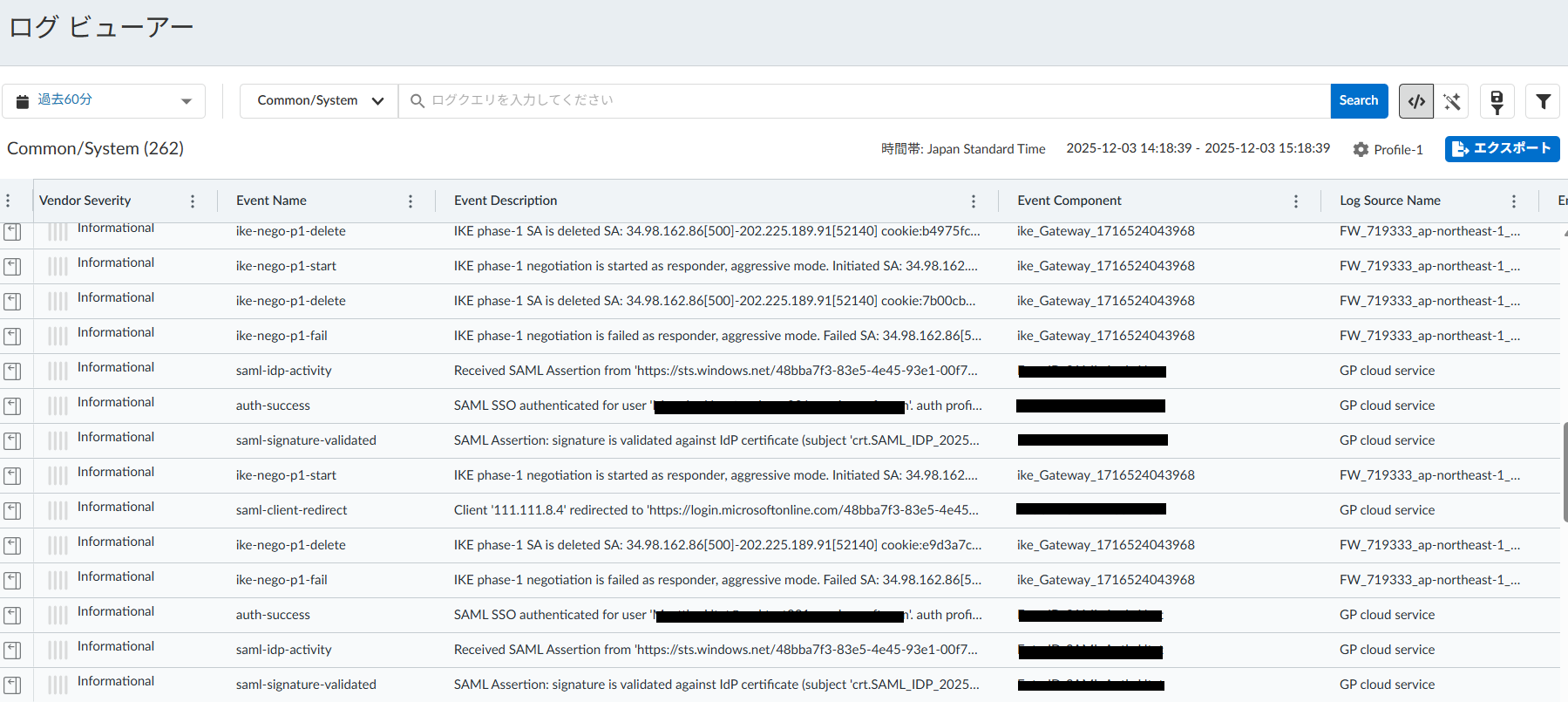 Prisma Accessのログビューア(Explore等)にて、対象ユーザーのSAML認証成功ログが記録されていることを確認します。